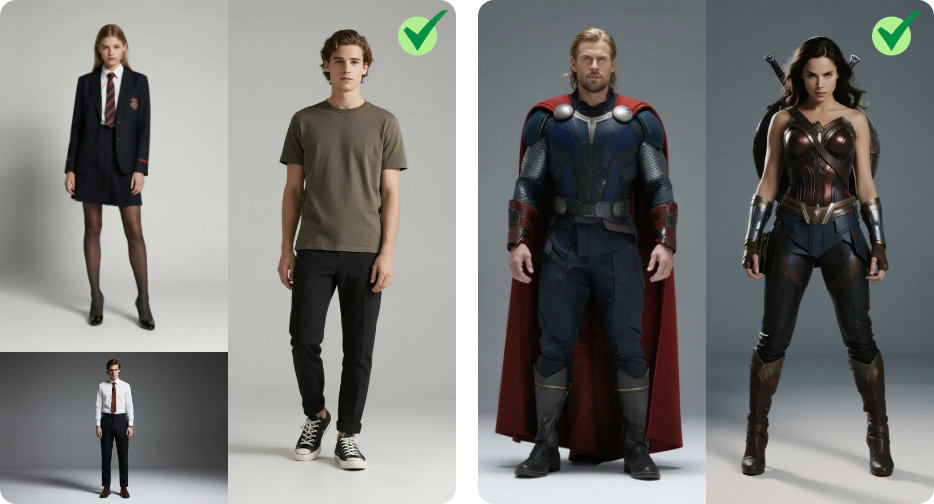 不確定購買的服裝是否適合自己?使用 AI 動態換身進行虛擬試穿。上傳你的一般影片,透過 360 度預覽,幫助你做出明智決策。保證在最終購買與實體配送前不遺漏任何細節。